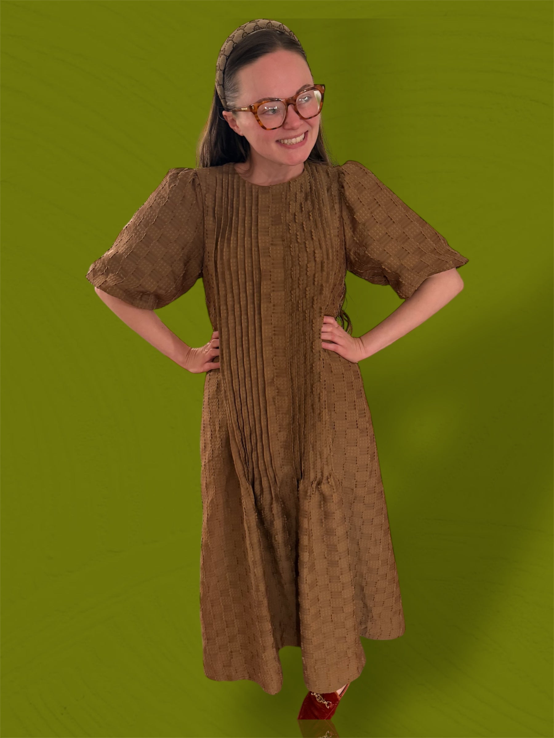 Our Be Squared Midi dress combines classic charm with modern comfort. Crafted from checkered textured woven fabric, it features puff short sleeves and delicate pintuck details at the front for subtle elegance. The elastic smocked back waist and shirred shoulders ensure a flattering, relaxed fit, while side pockets add practical convenience. With a round neckline and full lining, this midi-length dress offers an effortlessly polished look perfect for any occasion!